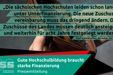 Studierendenvertretung befürwortet mehr Präsenz im Wintersemester, aber mahnt zur Vorsicht Diese Woche unterschrieben Vertreter*innen der Landesrektorenkonferenz (LRK) und des Sächsischen Staatsministeriums für Wissenschaft, Kultur und Tourismus (SMWK) ein Eckpunktepapier zur Planung des Wintersemesters an den sächsischen Hochschulen. Darin ist insbesondere festgehalten, dass die Lehre an den Hochschulen wieder zu einem Großteil in Präsenz stattfinden soll. Der Landessprecher*innenrat der Konferenz Sächsischer StudierendenschaftenHier weiter lesen…