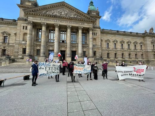 BAföG-Revisionsverhandlung vor Bundesverwaltungsgericht von Kundgebung begleitet Am morgigen Donnerstag, dem 20. Mai 2021, wird vor dem Bundesverwaltungsgericht in Leipzig eine Revisionsverhandlung zum Bundesausbildungsförderungsgesetz (BAföG) geführt. Der Streitgegenstand ist die Verfassungsmäßigkeit der Höhe von BAföG Leistungen für Studierende. Die Seite der studentischen Klägerin argumentiert, dass sich unter anderem aus dem Vergleich der Grundsicherung für Arbeitssuchende ein zu geringer BAföG Bedarf fürHier weiter lesen…