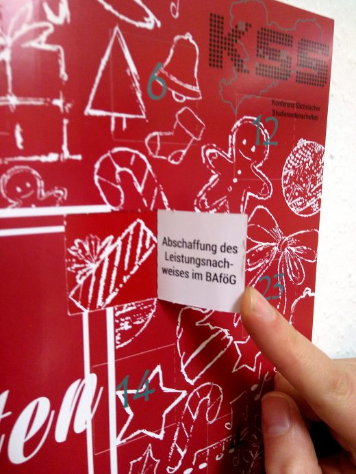 #KSSAdventskalender Wer letztes Jahr unseren Adventskalender verfolgt, wird feststellen, dass diese Forderung auch bereits letztes Jahr Teil war. Nun wir dachten uns: „Steter Tropfen höhlt den Stein.“ Alle, die BAföG bekommen kennen ihn… Den Leistungsnachweis. Viele Umstände können dazu führen, dass man ein bisschen im Studium zurückfällt und der Leistungsnachweis nicht mehr erfüllt werden kann. Das BAföG wird dann nachHier weiter lesen…
