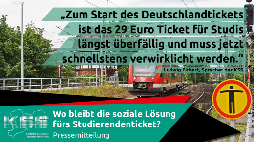 Sachsens Landesstudierendenvertretung irritiert von fehlender studentischer Beteiligung In den aktuellen Berichterstattungen bezüglich des Deutschlandticket stellt die Konferenz Sächsischer Studierendenschaften (KSS) fest, dass die Länder gemeinsam mit dem Bund ein Deutschlandticket im Solidarmodell in Höhe von 29,40 € präferieren. „Als Landesstudierendenvertretung sind wir sehr verwundert, dass diese Lösung ohne jegliche studentische Beteiligung erarbeitet wurden und uns über die Presse präsentiert wurde“Hier weiter lesen…