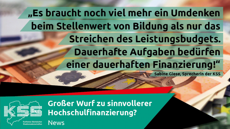 Auch an Sachsens Hochschulen ist die unzureichende Hochschulfinanzierung ein beständiges Leidensthema. Seit Jahren kritisiert die Konferenz Sächsischer Studierendenschaften (KSS), dass Hochschulen effizienz- und wirtschaftlichkeitsorientiert haushalten müssen und insbesondere Daueraufgaben lediglich durch befristete Projektmittel finanziert werden. Mit der aktuell geplanten Anpassung der Hochschulsteuerungsverordnung begrüßt die KSS, dass Hochschulen nun weniger in Abhängigkeit von ihren Leistungen finanziert werden. Die Landesstudierendenvertretung Sachsens kritisiert auf der anderen Seite jedoch weiterhin fehlende Verstetigungen von finanziellen Mitteln, die aus studentischer Sicht langfristig im Hochschulbereich notwendig wären.