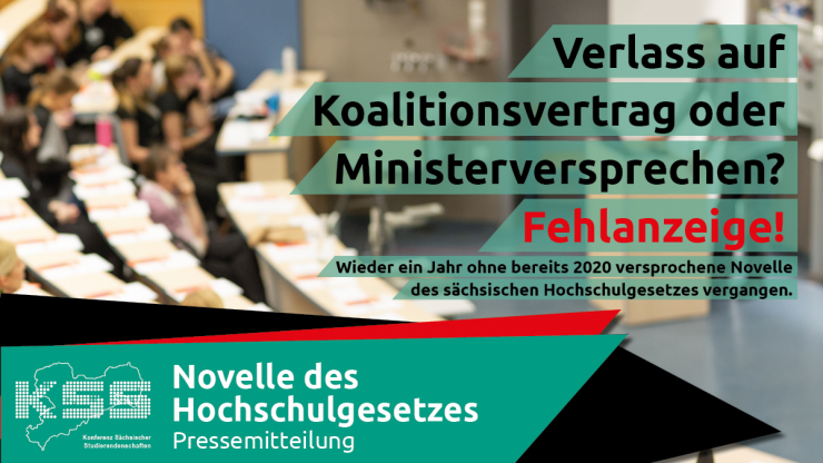 Immer wieder wurde darauf hingewiesen: Die Koalition aus CDU, SPD und Grünen hat sich mit dem Koalitionsvertrag verpflichtet bereits 2020 das Sächsische Hochschulfreiheitsgesetz (SächsHSFG) zu novellieren. Doch auch 2021 konnte sich das Sächsische Staatsministerium für Wissenschaft, Kultur und Tourismus (SMWKT) noch nicht einmal zu einem Referent*innenentwurf durchringen, obwohl er mehrfach für das nun vergangene Jahr angepriesen wurde. Damit scheint auch eine Novellierung für 2022 sehr unwahrscheinlich und die Koalition verfehlt ihr selbstgestecktes Ziel um voraussichtlich mindestens drei Jahre. Die Konferenz Sächsischer Studierendenschaften (KSS) kritisiert die langsame Umsetzung dieses Vorhabens vehement. Studierende und alle anderen Hochschulangehörigen wünschen sich endlich ein zeitgemäßes neues Hochschulgesetz. Ihre Vertretung fordert die Koalition daher wiederholt auf, möglichst schnell für die versprochene Novellierung zu sorgen.