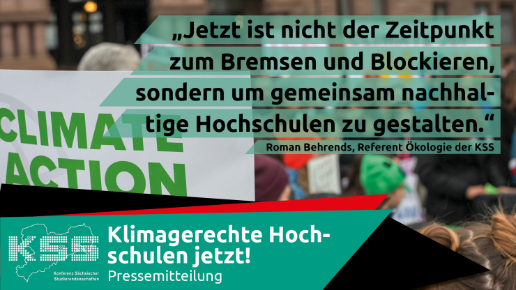 Die KSS hat 2020 einen klimapolitischen Forderungskatalog erarbeitet. Darin sind ambitionierte Forderungen an die Unileitungen der sächsischen Hochschulen enthalten. Dazu führt Ludwig Firkert, Sprecher der KSS, aus: „Bei den Nachhaltigkeitsstrategien der Hochschulen müssen alle Mitglieder beteiligt werden. Bisher haben die Studierendenschaften den Eindruck, dass die Rektorate allerdings zu wenig auf die studentischen Forderungen eingehen und wenig Interesse an einer Zusammenarbeit zeigen.“ Im Forderungskatalog werden in einem gesamtheitlichen Ansatz ambitionierte Veränderungen in den Bereichen Betrieb, Lehre, Forschung, Governance und Transfer gefordert. In einem Brief an die Rektor*innen der sächsischen Hochschulen hat die KSS bereits am Dienstag an die Hochschulleitungen appelliert sich gegenüber dem Wissenschaftsministerium für klimagerechte Hochschulen stark zu machen, dies läge ja auch im Interesse der Hochschulleitungen.
