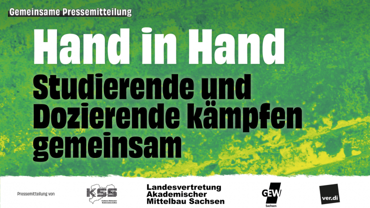 Die Interessensgruppen an den Sächsischen Hochschulen sind sich einig: Sowohl die Studierenden als auch die Beschäftigten fordern im Hinblick auf die Arbeitsbedingungen Verbesserungen im Entwurf zum neuen sächsischen Hochschulgesetz. Dazu positionieren sich nun die Konferenz Sächsischer Studierendenschaften (KSS) als verfasste Studierendenvertretung, die Landesvertretung des Akademischen Mittelbaus Sachsen (LAMS) sowie die Gewerkschaften Erziehung und Wissenschaft (GEW) und die Vereinte Dienstleistungsgewerkschaft (ver.di) gemeinsam und rufen zu Protesten auf. Am Montag, dem 17.10. wird dazu zusammen mit dem Bündnis aus Partei- und Gewerkschaftsjugenden „Revolution Studium“ zu Demonstrationen in Dresden und Leipzig aufgerufen.