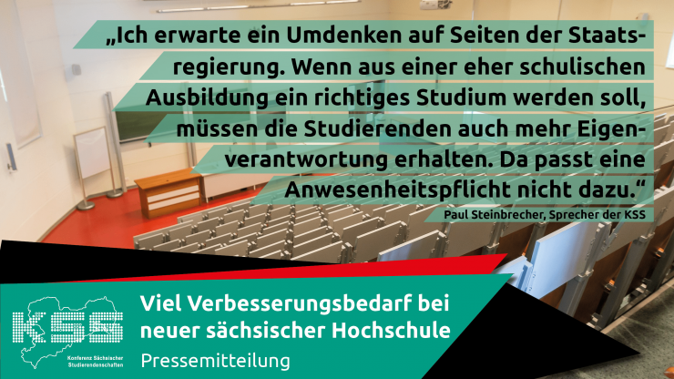 „Niemand kann besser entscheiden, wann, wie, wo und wann für das Studium am Besten gelernt wird, als die Studis selber. Der bisherige Gesetzesentwurf erlaubt dual Studierenden aber nicht, Eigenverantwortung zu übernehmen. Stattdessen ist für dual Studierende eine Anwesenheitspflicht vorgesehen. Am unverständlichsten ist allerdings, dass im Entwurf des Wissenschaftsministeriums die Regelungen zur Anwesenheit sogar verschärft wurden.“, kritisiert Paul Steinbrecher, Sprecher der KSS und führt weiter aus: „ich erwarte ein Umdenken auf Seiten der Staatsregierung. Wenn aus einer eher schulischen Ausbildung ein richtiges Studium werden soll, müssen die Studierenden auch mehr Eigenverantwortung erhalten. Da passt eine Anwesenheitspflicht nicht dazu.“